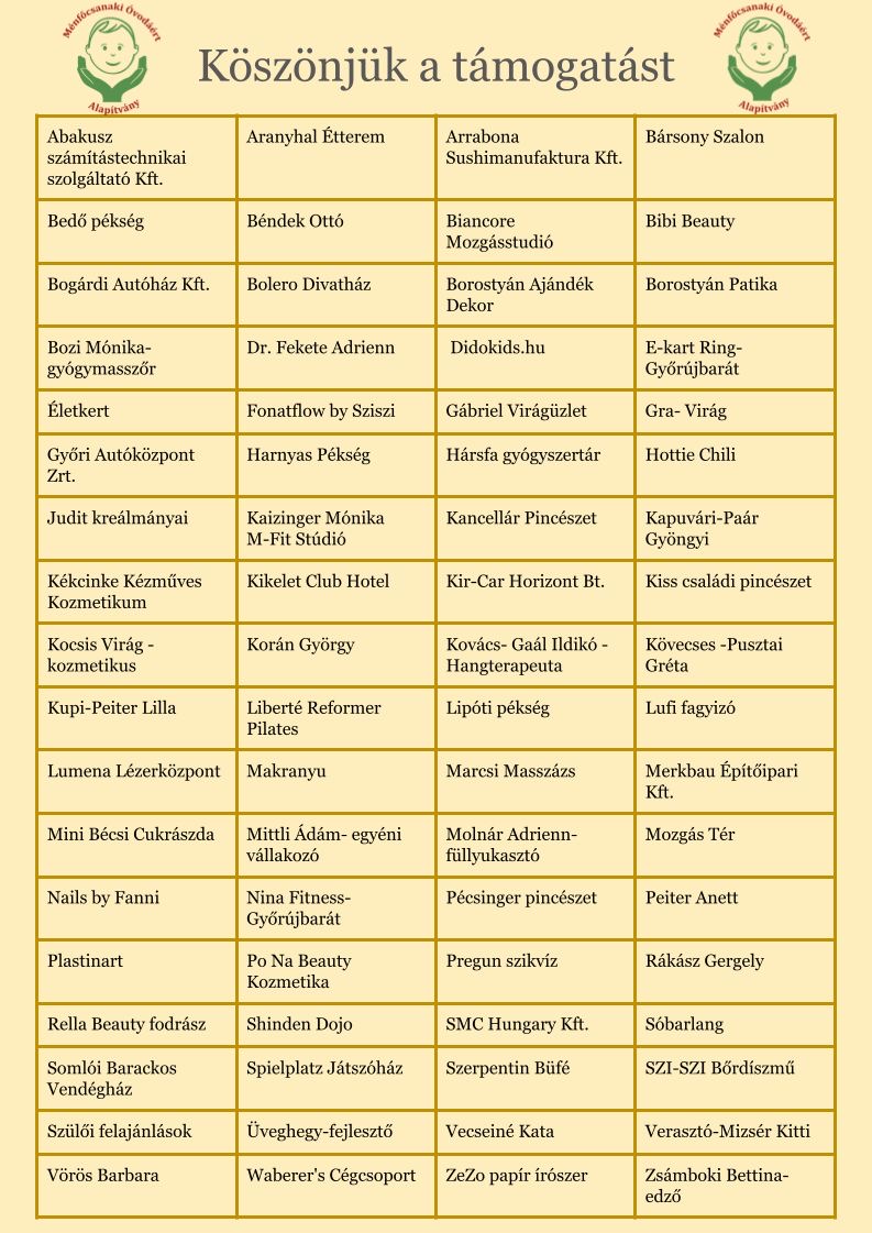 Köszönjük, hogy a Ménfőcsanaki Óvodáért Alapítványt felajánlásaikkal, részvételükkel támogatták!
