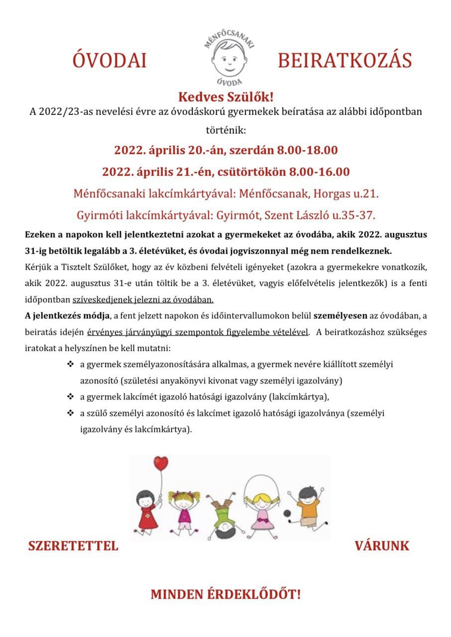 A beíratásról szóló hirdetmény szintén megtekinthető honlapunkon, valamint az egyes tagóvodákhoz tartozó utcák listája is elérhető a körzetjegyzékben.