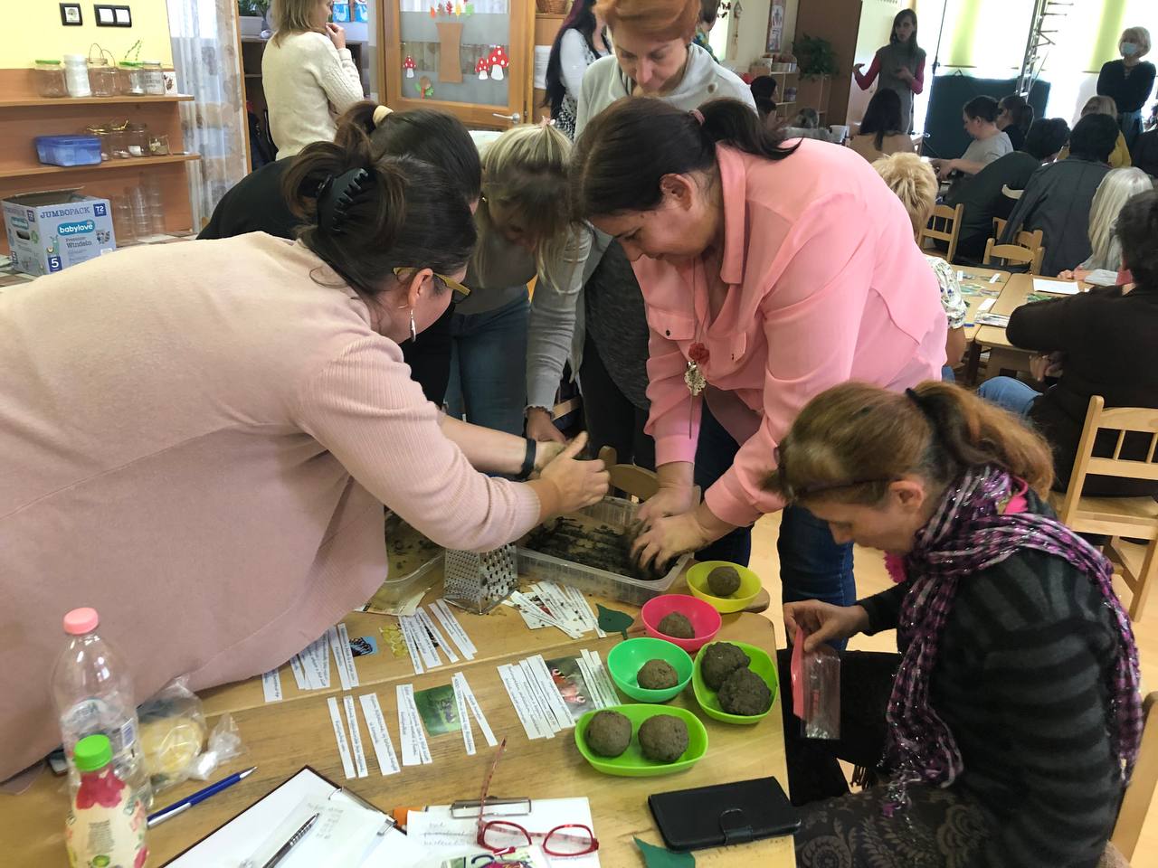 A nap harmadik főszereplőjeként kolléganőnk, Lakatos Gyöngyi adott ízelítőt a Százszorszép csoportban mindennapossá vált természetközeli nevelés lehetőségeiből. Mivel a Ménfőcsanaki Óvodai 2022/23-as nevelési évének kiemelt területe a környezetünk védelmére, szeretetére nevelés, az újrahasznosítás jegyében is sok érdekes megoldást, javaslatot kaptunk Gyöngyitől, amelyek egyszerűen és költségmentesen valósíthatók meg a gyermekekkel.