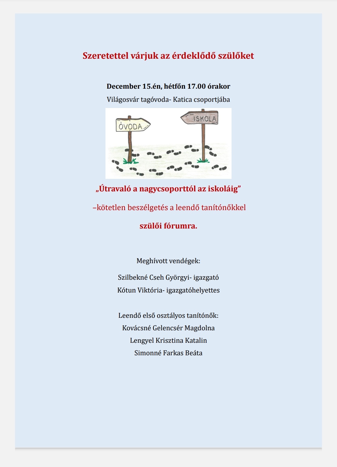 "Útravaló a nagycsoporttól az iskoláig" szülői fórum